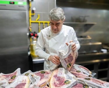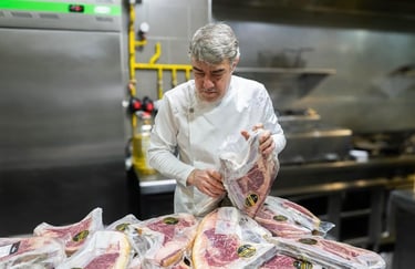 Cortes seleccionados, maduración justa y brasa en su punto, bajo la mirada del chef Rafael Herreros y un equipo entregado al detalle.